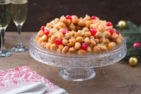 Codette colorate q.b. Miele millefiori 175 g Arancia candita 30 g Cedro candito 30 g Decorazione alimentare confettini argentati q.b. Ciliegie candite q.b.